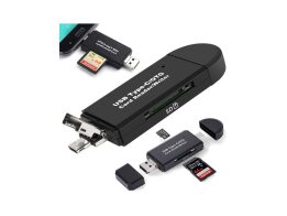 USB Card Reader Αναγνώστης Καρτών SD Micro SD TF Usb Usb-c MicroUsb 3 σε 1, σε Μαύρο χρώμα