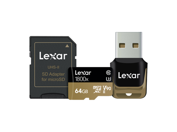 Lexar 64GB Professional 1800x microSDXC™ UHS-II cards (270MB/s) + adapter + reader