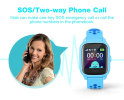 Διαθέτει έγχρωμη οθόνη αφής 1.33" και κάμερα 0.3 MP, ενώ υποστηρίζει τηλεφωνικές κλήσεις μέσω 2G με χρήση Nano SIM κάρτας. Για μέγιστη ασφάλεια, περιλαμβάνει κουμπί SOS για άμεσες κλήσεις έκτακτης ανάγκης.