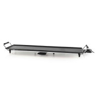Φινιρίσματα από ανοξείδωτο ατσάλι Αντικολλητική πλάκα ψησίματος από χυτό αλουμίνιο Ρυθμιζόμενος θερμοστάτης 8 μεμονωμένα αντικολλητικά τηγάνια 8 ξύλινες σπάτουλες Επιφάνεια μαγειρέματος 40 x 22 cm Ισχύς: 1400 W