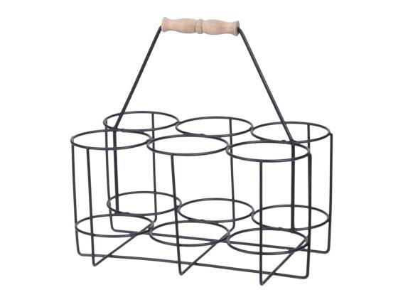 Κάβα κρασιών μπουκαλοθήκη, μεταλλική, 6 θέσεων σε μαύρο χρώμα, 28x19x28.5 cm Οργανώστε τα μπουκάλια του κρασιού σας στο σπίτι σας και παράλληλα διακοσμήστε τον χώρο σας μοναδικά. Η μεταλλική μπουκαλοθήκη με 6 θέσεις μπουκαλιων θα δέσει εξαιρετικά στο σαλόνι σας ότι διακόσμηση και εαν έχετε επιλέξει. Μικρή γεύση από κελάρι σπίτι σας! Μπορεί να χρησιμοποιηθεί και για σερβίρισμα. Διαθέτει και λαβή για εύκολη μεταφορά. Χαρακτηριστικά: Υλικό : Μέταλλο Θέσεις : 6 Μαύρο χρώμα Με ξύλινη λαβή Ιδανικό για κάθε χώρο Διαστάσεις : 28x19x28.5 cm (ΜΠΥ) Ευκολο στη μεταφορά