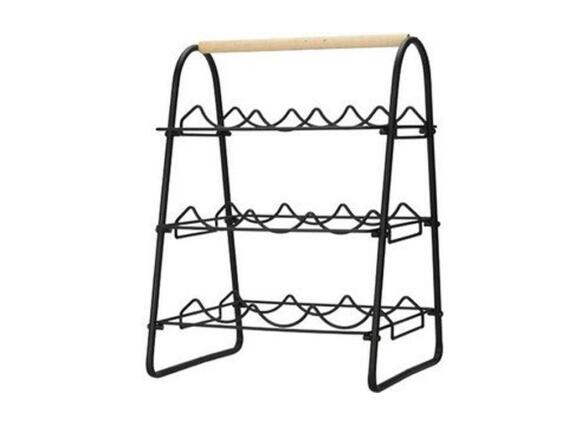 Μεταλλική Κάβα Kρασιών Μπουκαλοθήκη για 9 μπουκάλια με Ξύλινη Λαβή, 33x29x46 cm Wine Rack Πρακτική θήκη μπουκαλιών για οργάνωση και αποθήκευση 9 μπουκαλιών κρασιού ή ηδύποτων. Κατάλληλη για εσωτερικό χώρο μπορεί να τοποθετηθεί στο σαλόνι ή τον πάγκο της κουζίνας σας. Μπορείτε ακόμη να τη διακοσμήσετε επιδαπέδια και να κάνετε τη δική σας γωνιά που θα απολαμβάνετε το αγαπημένο σας ποτό. Είναι κατασκευασμένη από μέταλλο υψηλής ποιότητας, γεγονός που την καθιστά ανθεκτική στο χρόνο και δεν σκουριάζει. Διαθέτει λαβή από ξύλο για εύκολη μεταφορά. Χαρακτηριστικά προϊόντος: Υλικό: Μέταλλο, Ξύλο Με λαβή Πρακτική Σταθερή κατασκευή Για 9 μπουκάλια Δεν σκουριάζει Διαστάσεις: 33x29x46 cm