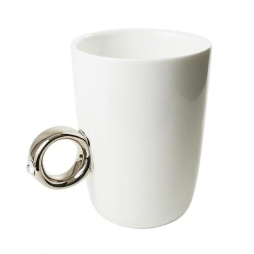 Gadget Master Λευκή Κούπα του καφέ με χερούλι ασημένιο μονόπετρο 3