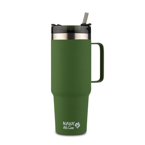 NAVA Θερμός ποτήρι ανοξείδωτο με πλαστικό καλαμάκι "We Care" πράσινο σκούρο 900ml 1