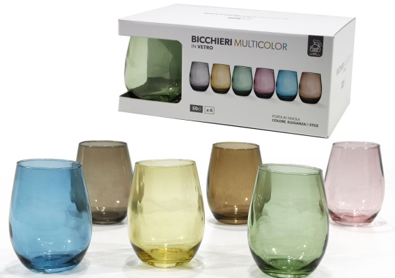 Ποτήρι 50cl 6 χρώματα γυαλί σετ 6τμχ.