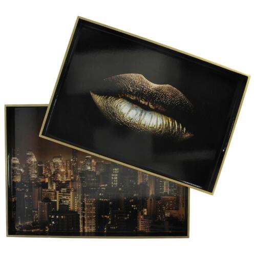 ARTELIBRE Δίσκος Σερβιρίσματος Μαύρο MDF 50x35x4cm Σετ 2Τμχ