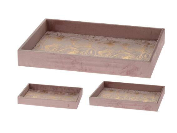 Σετ 2 τεμαχίων Ξύλινος Δίσκος Σερβιρίσματος με Βελούδινη επένδυση σε χρώμα Σάπιο Μήλο, Τray Tray Ένα ιδιαίτερο σετ 2 δίσκων σερβιρίσματος για τις γυναίκες που θέλουν έναν κάτι κομψό για τις πιο ιδιαίτερες περιπτώσεις της ζωής τους. Το σετ είναι κατασκευασμένο από ξύλο και έχει βελούδινη επένδυση στο χρώμα του σάπιου μήλου. Ο πάτος του κοσμείται από ένα αφηρημένο σχέδιο σε χρυσό χρώμα. Μπορούν να χρησιμοποιηθούν τόσο ως δίσκοι σερβιρίσματος, όσο και ως ένα ιδιαίτερο και καλαίσθητο διακοσμητικό για τον χώρο σας. Είναι σε παραλληλόγραμο σχήμα για ν αδιευκολύνει στο σερβίρισμα και είναι σίγπυρο πως θα εντυπωσιάσει τους καλεσμένους σας. Xαρακτηριστικά προϊόντος: Υλικό: Ξύλο Βελούδινη επένδυση Ιδανικό και ως διακοσμητικό Οικιακή χρήση