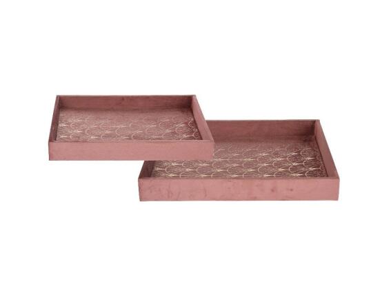 Σετ Δίσκοι Σερβιρίσματος 2 τεμ σε ορθογώνιο σχήμα με βελούδινη υφή, Tray Ροζ
