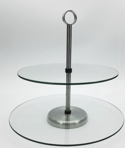 Δίσκος σερβιρίσματος διώροφος διάφανο γυαλί/μέταλλο Φ25/Φ30x28cm.