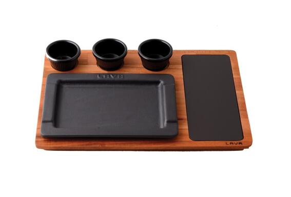 Πιάτο Μαντεμένιο 19χ26 Με Ξύλινη Βάση και Αποσπώμενη Βοηθητική Πλάκα Πορσελάνης LAVAΠιάτο από χυτοσίδηρο με εμαγιέ επίστρωση, αποσπώμενη πλάκα πορσελάνης και ξύλινη βάση από ξύλο παραλίας|