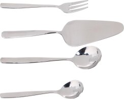 Alpina Σετ Μαχαιροπίρουνα Cake Accessory 9pcs. Όλα όσα χρειάζεστε για να σερβίρετε και να φάτε τα κέικ και τις τούρτες σας με τον πιο γιορτινό τρόπο. Το σετ αποτελείται από 6 πιρούνια κέικ, μία σπάτουλα για κέικ, ένα κουτάλι κρέμας και ένα κουτάλι ζάχαρης. Πολύ βολικό για να σερβίρετε ένα κομμάτι κέικ ή τούρτας με κομψό τρόπο σε οποιαδήποτε εορταστική εκδήλωση.