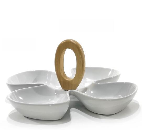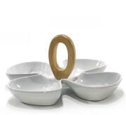 Δίσκος σερβιρίσματος ορεκτικών με 4 θέσεις και λαβή λευκό/φυσικό κεραμικό/μπαμπού 28x18x13cm.