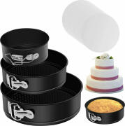 1 Φόρμα ζαχαροπλαστικής με αποσπώμενη βάση 22,5 cm - carbon steel, 1 Φόρμα ζαχαροπλαστικής με αποσπώμενη βάση 17,5 cm - carbon steel, 1 Φόρμα ζαχαροπλαστικής αποσπώμενη βάση 10 cm - carbon steel, 50 τεμάχια αντικολλητικό χαρτί διαμέτρου 22,5 cm