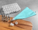 Φτιάξτε το κέικ ή το επιδόρπιό σας και κάντε το ξεχωριστό με το κιτ διακόσμησης 36 τμχ.   Χαρακτηριστικά: 36 διαφορετικοί τρόποι διακόσμησης με μύτες από ανοξείδωτο χάλυβα 2 πλαστικοί επαναχρησιμοποιούμενοι  ζεύκτες (προσαρμογέας) από  πλαστικό που είναι κατάτλληλο για τρόφιμα επαναχρησιμοποιήσιμη θήκη διακόσμησης σιλικόνης εύκολο στη χρήση αλλά με όμορφο αποτέλεσμα  υπέροχο κιτ διακόσμησης για τη δημιουργία πολλών ειδών λουλουδιών και μοτίβων σε κέικ, cupcakes, μπισκότα για πίτες κτλ ιδανικό κιτ διακόσμησης κέικ για αρχάριους αλλά όχι μόνο πλαστικό κουτί αποθήκευσης