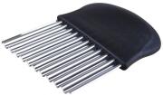 Ένας κυμματιστός κόφτης κατασκευασμένος από ανοξείδωτο ατσάλι ο οποίος σας επιτρέπει να κόψετε τα λαχανικά και φρούτα σας εύκολα, γρήγορα και με ακρίβεια στο μέγεθος της επιλογής σας. Ιδανικός για πατάτες «cheaps» αλλά και να δημιουργήσετε όμορφα διακοσμημένα πιάτα.