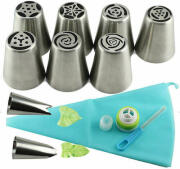 Το σετ ζαχαροπλαστικής περιλαμβάνει 9 διαφορετικές ανοξείδωτες μύτες κορνέ, μία επαναχρησιμοποιούμενη σακκούλα και ένα βουρτσάκι καθαρισμού. Επιλέξτε το σχέδιο που θέλετε και δημιουργήστε εύκολα και γρήγορα εντυπωσιακά γλυκά.