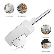 Μια ανοξείδωτη σπάτουλα την οποία μπορείτε να χρησιμοποιήσετε όχι μόνο για να σερβίρετε αλλά και για να κόψετε το κέικ, την πίτσα ή την πίτα σας. Η μία πλευρά είναι μαχαίρι, η άλλη πλευρά έχει οδοντωτή ροδέλα και η πάνω πλευρά χρησιμοποιείται σαν σπάτουλα σερβιρίσματος. Για την ευκολία μεταφοράς της παρασκευής σας υπάρχει και ένα έξτρα κλιπ πάνω στην σπάτουλα για να μπορείτε να μεταφέρετε εύκολα το κομμένο κομμάτι.