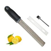 Ένας ανοξείδωτος τρίφτης με εργονομική λαβή από σιλικόνη πολλαπλών χρήσεων. Η ανοξείδωτη λάμα του με διάσταση 20x3cm αλλά και η αντιολισθητική του λαβή θα σας επιτρέψει να δημιουργήσετε εύκολα και γρήγορα ξύσμα από λεμόνι, πορτοκάλι, σοκολάτα, τυρί κα. Ο τρίφτης έχει μήκος 33cm και διατίθεται με προστατευτική θήκη αλλά και βουρτσάκι καθαρισμού.