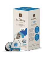 ΧΩΡΙΣ ΚΑΦΕΪΝΗ Αποκλειστικά από ποικιλίες Arabica, ο ελληνικός καφές Ελ Γκρέκο χωρίς καφεΐνη προσφέρει μια ξεχωριστή νότα στο φλιτζάνι σας. Ισορροπημένοι τόνοι κακάο, μαύρου τσαγιού, μοσχοκάρυδου, καραμελωμένης μαύρης ζάχαρης και καβουρδισμένων ξηρών καρπών δένουν μοναδικά σε ένα απολαυστικό σύνολο και δημιουργούν έναν πρωτότυπο συνδυασμό.