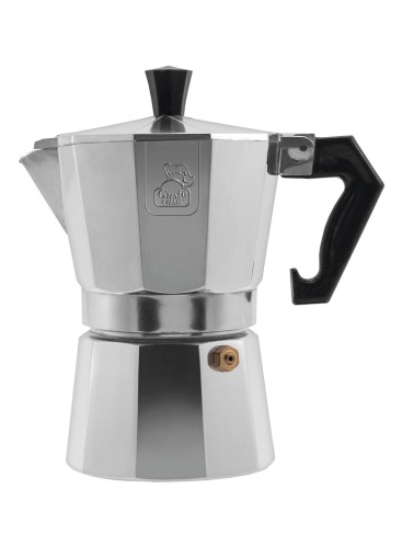 Καφετιέρα Espresso 2 φλυτζανιών με λαβή βακελίτη ασημί/μαύρο αλουμίνιο.