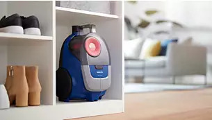Η πρακτική και compact σχεδίαση εξασφαλίζει εύκολη αποθήκευση και μεταφορά της ηλεκτρικής σκούπας XB2142/09.