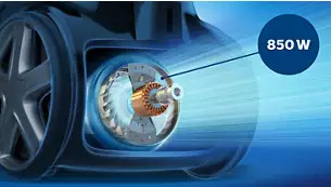 Το υψηλής απόδοσης μοτέρ με ισχύ 850W παρέχει υψηλή απορροφητική ισχύ για εξαιρετικά αποτελέσματα καθαρισμού.