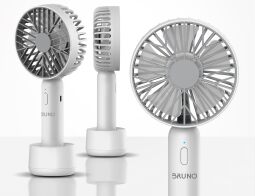 BRUNO BRN-0229 Φορητός ανεμιστήρας χειρός επαναφορτιζόμενος με βάση και λουράκι μεταφοράς λευκός-γκρί