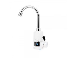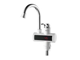 Ηλεκτρικός ταχυθερμαντήρας βρύσης ισχύος 3300W με οθόνη ένδειξης θερμοκρασίας νερού ιδανικός για εξοχικά αλλά και όπου θέλετε να εξοικονομήσετε ενέργεια από το ζεστό νερό. Η είσοδος του νερού είναι από το κάτω μέρος.