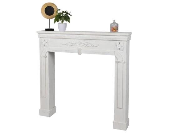 Ξύλινη Πρόσοψη Τζακιού Vinatge Διακοσμητικό Πλαίσιο σε Λευκό Χρώμα, 18x107x100 cm