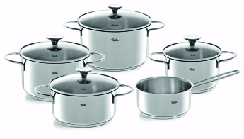 Fissler Σετ από 5 Σκεύη Copenhagen 4011405000.  Σετ μαγειρικών σκευών με γυάλινο καπάκι κατασκευασμένα από ανοξείδωτο ατσάλι 18/10.