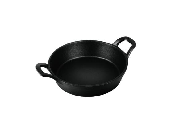 Berlinger Haus Ρηχή κατσαρόλα 18 cm από Μαντέμι σε Μαύρο Χρώμα, Strong Mold Seria BH-6536 Πλατιά μαντεμένια κατσαρόλα BerlingerHaus BH-6536 από τη συλλογή Strong Mold είναι ένα πολυχρηστικό σκεύος μαγειρικής που συνδυάζει αντοχή, ποιότητα και ευελιξία. Αυτό το 2 σε 1 σκεύος, κατασκευασμένο από βαρύ μαντέμι, εξασφαλίζει εξαιρετική διατήρηση και ομοιόμορφη κατανομή της θερμότητας, διατηρώντας τα φαγητά ζεστά για μεγαλύτερο διάστημα. Χαρακτηριστικά: Πολυχρηστικότητα (3 σε 1) – Ιδανικό για χρήση σε επαγωγικές εστίες, φούρνο και υπαίθριες συνθήκες (π.χ. πικνίκ). Ισορροπημένη κατανομή θερμότητας – Το μαντέμι εξασφαλίζει ομοιόμορφο μαγείρεμα και τέλειο αποτέλεσμα. Ανθεκτικότητα & Μακροχρόνια χρήση – Κατασκευασμένο από υψηλής ποιότητας μαντέμι, αντέχει στη φθορά και στις υψηλές θερμοκρασίες. Διατήρηση θερμότητας – Κρατά το φαγητό ζεστό για μεγαλύτερο χρονικό διάστημα μετά το μαγείρεμα. Μοντέρνος σχεδιασμός – Στιβαρή και κομψή εμφάνιση σε μαύρο χρώμα. Διαστάσεις: 18 cm διάμετρος & 4,3 cm ύψος, ιδανικό για μικρές μερίδες ή συνοδευτικά πιάτα.