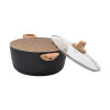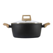Κατσαρόλα Earth Series ιδανική για κάθε κουζίνα και νοικοκυριό. Κατασκευασμένη από πρεσσαριστό αλουμίνιο πάχους 3.0 mm για άψογη απόδοση σε κάθε χρήση. Προσφέρει ομοιόμορφη κατανομή της θερμοκρασίας για τέλειο ψήσιμο και γρήγορο μαγείρεμα. Η τριπλή μαρμάρινη αντικολλητική επίστρωση που διαθέτει προσφέρει εντυπωσιακές αντικολλητικές ιδιότητες και ενισχυμένη ανθεκτικότητα στα γδαρσίματα. Με γυάλινο πυράντοχο καπάκι που περιβάλλεται από ανοξείδωτο στεφάνι και εργονομικές αντιολισθητικές λαβές από βακελίτη σε ξύλινη απόχρωση που παραμένουν κρύες κατά το μαγείρεμα για άνετο κράτημα.