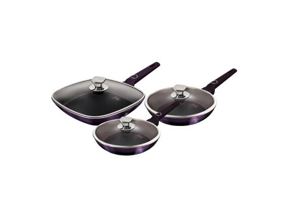 Berlinger Haus Σετ Αντικολλητικά Τηγάνια 6 τεμ με Καπάκι από Αλουμίνιο, Purple Eclipse BH-7107 1
