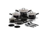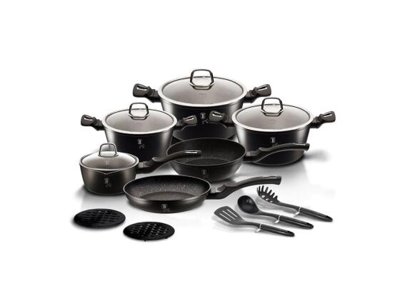 Berlinger Haus Σετ Μαγειρικά Σκεύη 15 τεμ με Τριπλή Μαρμάρινη Επίστρωση, Black Silver BH-6155NL