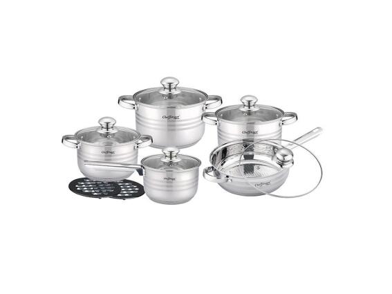Cheffinger Σετ Μαγειρικά Σκεύη 12 τμχ από Ανοξείδωτο Ατσάλι σε ασημί χρώμα, CF-SS-1231