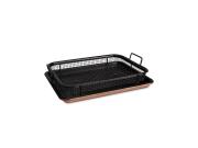 Berlinger Haus Αντικολλητικό Ταψί για Τηγάνισμα Χωρίς Λάδι, Metallic Line Rose Gold BH-7856 Ανακαλύψτε έναν πιο υγιεινό τρόπο μαγειρέματος με το Berlinger Haus BH 7856, το οποίο συνδυάζει κομψότητα και πρακτικότητα, προσφέροντας μια απολαυστική εμπειρία στην κουζίνα σας. Με τον μεταλλικό ροζ φινίρισμα, δεν είναι απλά ένα σκεύος είναι διακοσμητικό στοιχείο για τον χώρο σας. Χαρακτηριστικά: Αντικολλητική επίστρωση τιτανίου, μπορείτε να μαγειρεύετε με λιγότερο λάδι ή βούτυρο, μειώνοντας τις θερμίδες και τα κορεσμένα λιπαρά. Ανοξείδωτο καλάθι που επιτρέπει τον σωστό αερισμό των τροφίμων, προσφέροντας τέλεια μαγειρεμένα και τραγανά αποτελέσματα χωρίς τη χρήση λαδόκολλας. Το ταψί είναι κατασκευασμένο από βαρύ ανθρακοχάλυβα, εξασφαλίζοντας μακροχρόνια αντοχή και αποτελεσματική κατανομή θερμότητας. Δεν περιέχει PFOA, μόλυβδο και κάδμιο, κάνοντας το απόλυτα ασφαλές για καθημερινή χρήση. Φροντίδα και Συντήρηση: Εύκολο στον καθαρισμό: Χάρη στην αντικολλητική του επιφάνεια, ο καθαρισμός γίνεται παιχνίδι. Ασφαλές για πλυντήριο πιάτων: Συνιστάται χαμηλή θερμοκρασία για τη διατήρηση της επίστρωσης και του μεταλλικού χρώματος. Αποφύγετε τις απότομες αλλαγές θερμοκρασίας: Αφήστε το σκεύος να κρυώσει πριν το πλύνετε για να διατηρηθεί η αντικολλητική του επιφάνεια.
