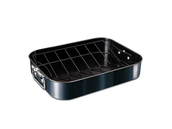 Berlinger Haus Αντικολλητικό Ταψί με σχάρα από Αλουμίνιο, 41.5x32, Metallic Line Aquamarine BH-7850 Αυτό το αντικολλητικό ταψί ψησίματος με σχάρα από τη Berlinger Haus θα γίνει ο τέλειος σύμμαχός σας για το μαγείρεμα του κυριακάτικου ψητού σας. Είναι ευέλικτο και μπορεί να χρησιμοποιηθεί για την παρασκευή μιας ποικιλίας κρεάτων ή λαχανικών, ή και των δύο ταυτόχρονα. Η σχάρα αφαιρείται και προστίθεται εύκολα και θα σας βοηθήσει να μαγειρέψετε το τέλειο πιάτο για την οικογένεια ή τους φίλους σας. Όταν χρησιμοποιείται, εξασφαλίζει ότι ο ζεστός αέρας φτάνει στην κάτω πλευρά του φαγητού, για ένα τέλειο τραγανό φινίρισμα. Το όμορφο μεταλλικό μπλε χρώμα ξεχωρίζει και οι μεγάλες λαβές από ανοξείδωτο ατσάλι παρέχουν άνετη και ασφαλή χρήση του ταψιού. Η αντικολλητική επίστρωση θα εξασφαλίσει την εύκολη συλλογή των υγρών και του λίπους για να φτιάξετε μια νόστιμη σάλτσα για το γεύμα σας. Χαρακτηριστικά: Υλικό: Ανθρακούχο Ατσάλι Επίστρωση: Τιτάνιο αντικολλητική επίστρωση Διαστάσεις: 41,5 x 32 x 7,7 cm Οικολογικό: Όλα τα προϊόντα της συλλογής Burgundy είναι φιλικά προς το περιβάλλον. Δεν περιέχουν επιβλαβείς ουσίες όπως PFOA, μόλυβδο και κάδμιο. Αντικολλητική επίστρωση: Επιτρέπει το μαγείρεμα με λίγο ή καθόλου λάδι και καθαρίζεται εύκολα. Σχάρα: Συμβάλλει στο ομοιόμορφο ψήσιμο και στο τραγανό αποτέλεσμα. Μεγάλες λαβές: Παρέχουν ασφαλή και άνετο χειρισμό. Ευέλικτο: Ιδανικό για ψήσιμο κρεάτων, λαχανικών ή συνδυασμό τους.