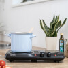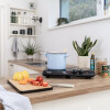 Ο σχεδιασμός, σε διακριτικό μαύρο χρώμα, δίνει στη συσκευή μια κομψή εμφάνιση, που εναρμονίζεται με όλα τα στυλ κουζίνας. Λόγω του σχεδιασμού της εστίας, παραμένει υπολειπόμενη θερμότητα μετά την απενεργοποίηση, διατηρώντας ζεστό το φαγητό σας για μεγάλο χρονικό διάστημα, ενώ παράλληλα τηγανίζεται στην διπλανή εστία.