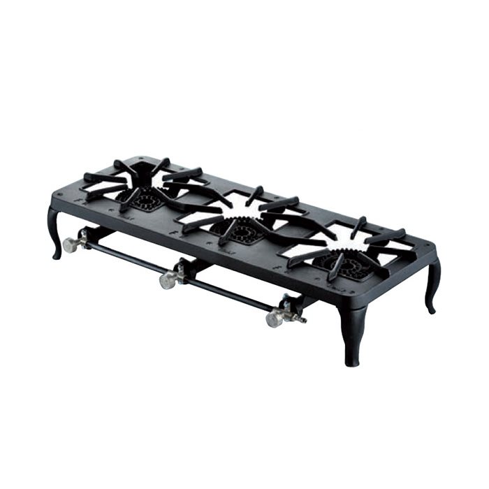 Τριπλή εστία υγραερίου βαρέως τύπου από μαντέμι. H επιτραπέζια εστία υγραερίου (χαμηλής πίεσης) της FOKER, διαθέτει μαντεμένιο καυστήρα και μαντεμένιο σκελετό, προσδίδοντάς της απαράμιλλη στιβαρότητα και αντοχή τόσο στον χρόνο όσο και στις υψηλές θερμοκρασίες. Έχει υψηλή απόδοση, συνολικά 12 kW, για να σας προσφέρει τέλεια μαγειρικά αποτελέσματα, όπως μόνο η φλόγα μπορεί