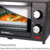 Φουρνάκι χωρητικότητας 10 λίτρων, 800W με 2 αντιστάσεις χαλαζία, χρονοδιακόπτη και θερμοστάτη.