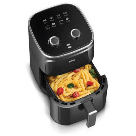 Primo Φριτέζα Αέρος με Αποσπώμενο Κάδο 1400W 5lt PRAF-40437 Μαύρη. Η φριτέζα αέρος της Primo με ισχύ 1400W και κάδο με χωρητικότητας 5 λίτρων, είναι μια ιδανική λύση για να μαγειρεύεις πιο υγιεινά και οικονομικά σε σχέση με τις κλασικές φριτέζες, καθώς χρειάζεται ελάχιστο λάδι (1-2 κουταλιές).
