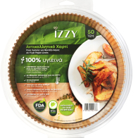 Izzy Αντικολλητικό Χαρτί Στρογγυλό Μιας Χρήσης για Φριτέζες Αέρος 50τμχ IZ-8219. Αντικολλητικό χαρτί μιας χρήσης σε ποσότητα 50 τεμάχια για φριτέζες αέρος.