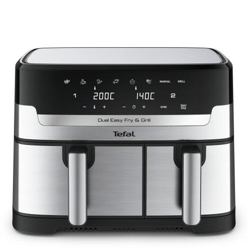 Η Dual Easy Fry & Grill της Tefal διαθέτει δύο κάδους για να μαγειρέψεις δύο διαφορετικά πιάτα, από ψητό κρέας και τηγανητές πατάτες μέχρι τηγανητό ψάρι και ψητά λαχανικά, όλα έτοιμα ταυτόχρονα.