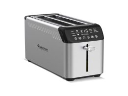 Φρυγανιέρα με 4 θέσεις και ισχύ 1400 W. Σας επιτρέπει να φρυγανίζετε μακρύτερες και παχύτερες φέτες από το κανονικό έως και 25.5 x 11.5 με πλάτος 4 cm. Είναι κατασκευασμένη από ανοξείδωτο ατσάλι για εύκολο καθάρισμα και μεγάλη αντοχή στην καθημερινή χρήση. Διαθέτει λειτουργίες για ζέσταμα και απόψυξη. Το ταψάκι στο κάτω μέρος μαζεύει τα ψίχουλα και διαθέτει αποσπώμενες σχάρες για να ζεστάνετε τρόφιμα που δεν χωράνε στις εγκοπές, όπως κρουασάν και πίτες.