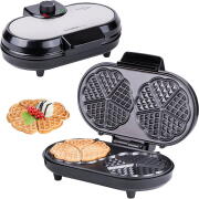 Βαφλιέρα για 10 μικρές βάφλες σε σχήμα καρδιές 1000W με αντικολλητικές πλάκες. Χάρη στην αντικολλητική της επίστρωση δεν χρειάζεται λάδι, για να φτιάχνετε πιο ελαφριές και γευστικές βάφλες και να μπορείτε να τις αφαιρείτε εύκολα. Διαθέτει θερμοστάτη, ώστε να ψήνετε κάθε φορά τις βάφλες όπως ακριβώς τις θέλετε. Το καλώδιο μαζεύεται στην ειδική υποδοχή για να πιάνει λιγότερο χώρο και να είναι εύκολο στην αποθήκευση.