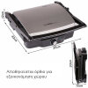 Τοστιέρα – grill με θερμοστάτη και αντικολλητικες πλάκες και 2 δοχεία για απομάκρυνση του λίπους.