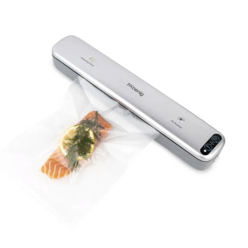 Με τη συσκευή σφραγίσματος τροφίμων, από την εταιρία H.Koenig, μπορείτε να διατηρήσετε τις τροφές για μεγαλύτερο χρονικό διάστημα, αυξάνοντας το χρόνο ζωής των προϊόντων στο ψυγείο στη συντήρηση ή στην κατάψυξη. Η συσκευή σφραγίσματος σας προσφέρει τη δυνατότητα να συντηρήσετε προϊόντα κρέατος, ψαριών, πουλερικών, λαχανικών, τυριών, ζυμαρικών, αποξηραμένων φρούτων, μπαχαρικών, ειδών αρτοποιίας κ.α. σε κενό αέρος. Η λειτουργία της συσκευής είναι απλή και εύκολη. Μπορείτε να συσκευάσετε και τα υγρά τρόφιμα. Ο αεροστεγής τρόπος κλεισίματος εξασφαλίζει την προστασία τους από την ανάπτυξη των μικροβίων. Ο χρόνος σφραγίσματος που απαιτείται είναι 10 δευτερόλεπτα. Στη συσκευασία περιλαμβάνονται 10 σακούλες 20 x 30 cm που πλένονται. Χαρακτηριστικά: Αεροστεγής τρόπος κλεισίματος Χρόνος σφραγίσματος: 10 δευτερόλεπτα Μπορεί να σφραγίσει σακούλες μέχρι 30 cm Συντήρηση ξηρών ή υγρών τροφών Προστασία από υπερθέρμανση Το προϊόν εισάγεται και διατίθεται από την SPM Network.