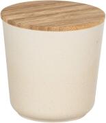 Δοχείο Αποθήκευσης Bondy 0,5lt • Ελκυστικό δοχείο αποθήκευσης με στιβαρό καπάκι Bamboo και αεροστεγές δακτύλιο σιλικόνης. • Προσφέρει μακράς διάρκειας αποθήκευση τροφίμων στα ντουλάπια και τα ράφια της κουζίνας. • Ιδανικό για πλιγούρι βρώμης, δημητριακά, ρύζι, μπαχαρικά, καφέ, γλυκά ή ακόμη και ως διακοσμητικό στο σαλόνι και στο μπάνιο. • Κατασκευασμένο από υψηλής ποιότητας, βιώσιμες ίνες σε διακριτική απόχρωση • BPA-free: Απαλλαγμένο από την βλαβερή για την υγεία χημική ουσία δισφαινόλη Α. Διαστάσεις (ΔxΥ): 10,5x10,5cm Χωρητικότητα: 0,50 λίτρο