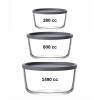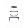 Το σετ αποτελείτε από τρία δοχεία με διάμετρο 110, 144, και 173mm με χωρητικότητα 380ml, 800, και 1490ml αντίστοιχα. Χωρίς BPA, φθαλικές ενώσεις, PVC, μόλυβδο. Πλένεται στο επάνω ράφι στο πλυντήριο πιάτων. Το καπάκι πλένεται στο χέρι για παρατεταμένη διάρκεια ζωής και για την αποφυγή τυχόν στρέβλωσης/ρωγμής. Μην αποθηκεύετε το ένα μέσα στο άλλο για να αποφύγετε ρωγμές και σπασίματα. Προσοχή: Προορίζεται για χρήση από ενήλικες ή υπό άμεση επίβλεψη. Αποφύγετε την ακραία αλλαγή θερμοκρασίας. Μην το χρησιμοποιείτε πάνω ή κάτω από άμεση πηγή θερμότητας (π.χ. εστίες, φούρνους, τοστιέρας κ.τ.λ.)