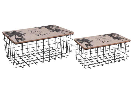 Μεταλλικά καλάθια αποθήκευσης με ξύλινο καπάκι κατάλληλο για εσωτερική διακόσμηση